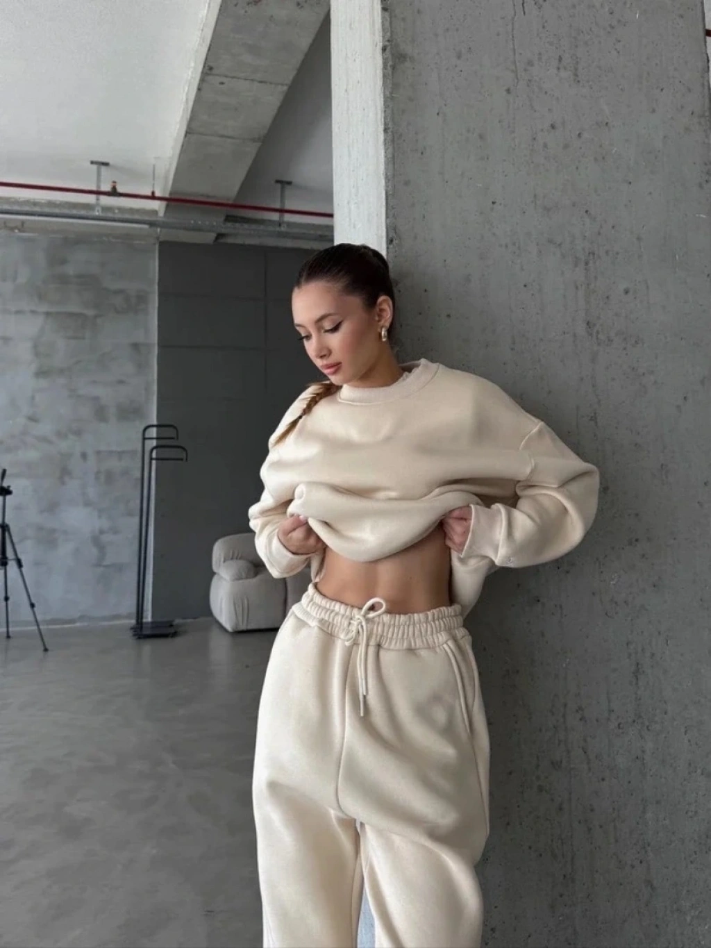 • 3 iplik şardonlu Lastik paça eşofman bej p510439