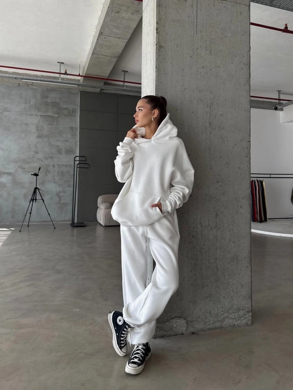 KAZAX markasının 3 iplik şardonlu Lastik paça eşofmanı beyaz renkte şıklığı ve rahatlığı bir arada sunuyor. Hem spor yaparken hem de günlük hayatta şıklığından ödün vermek istemeyen kadınlar için ideal bir seçenek.