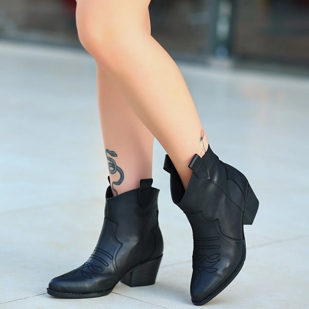 Akver Siyah Cilt Topuklu Bot
