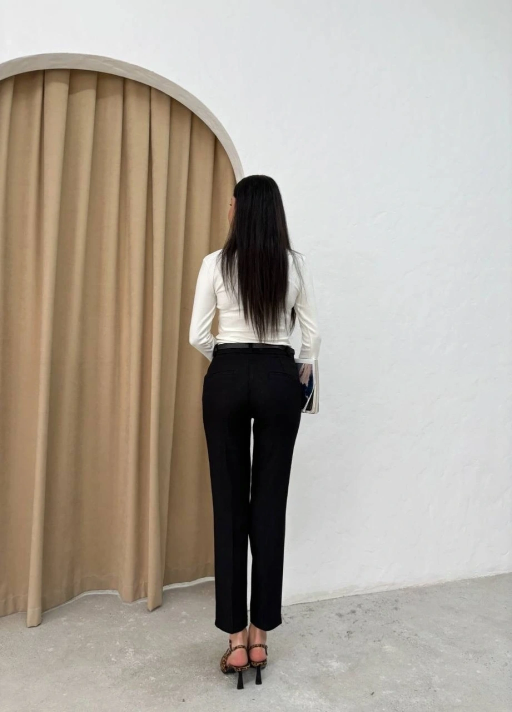 Bu sezonun trendlerine uygun bir görünüm elde etmek için fark yaratan bir parça arıyorsanız, Dar Paça Kemerli Kumaş Pantolon Siyah PT53 tam size göre! Hem şık hem de rahat yapısıyla ön plana çıkan bu pantolon, gardırobunuzun vazgeçilmezi olmaya aday. İşte bu muhteşem pantolonun özellikleri: