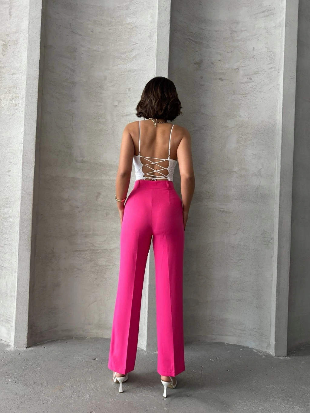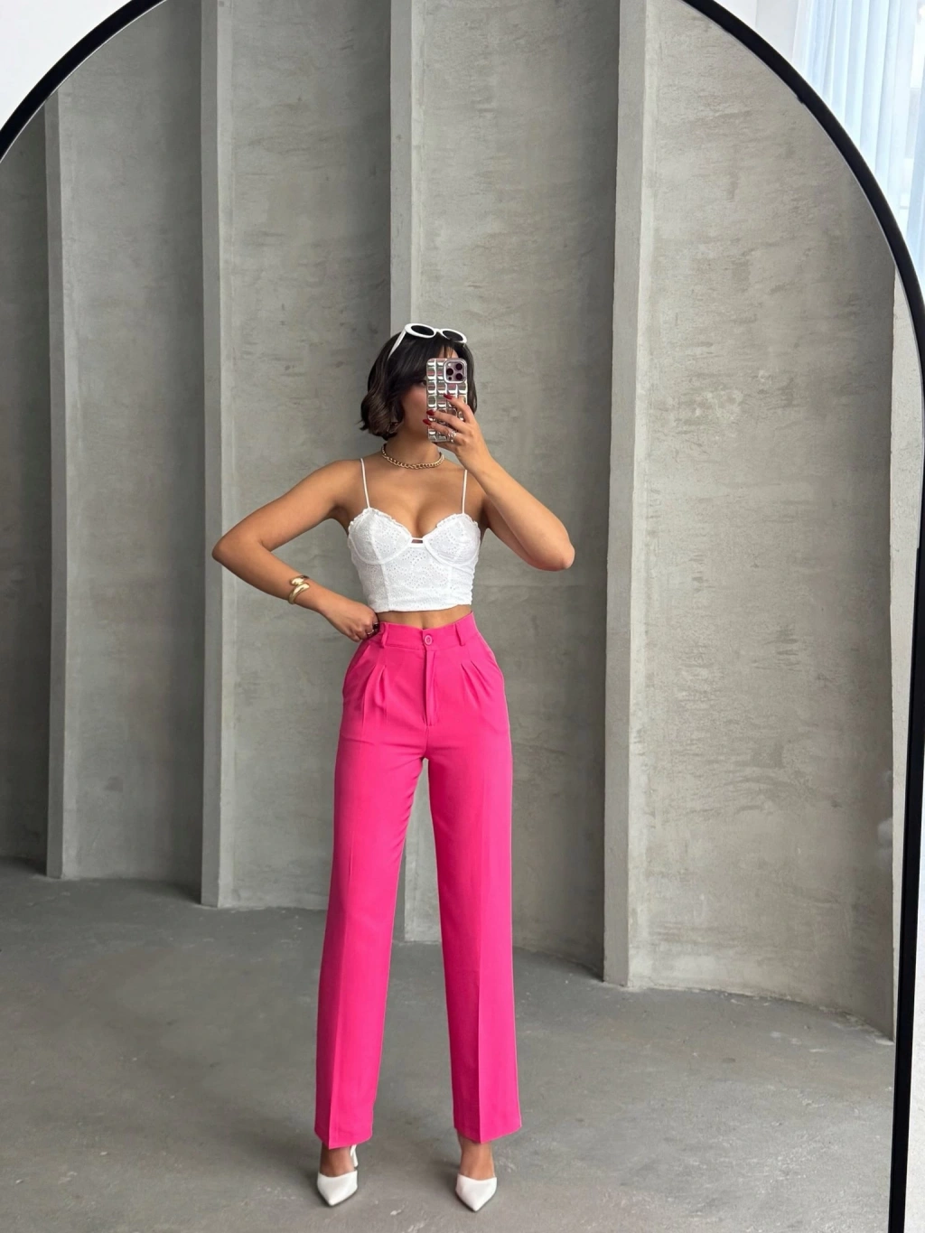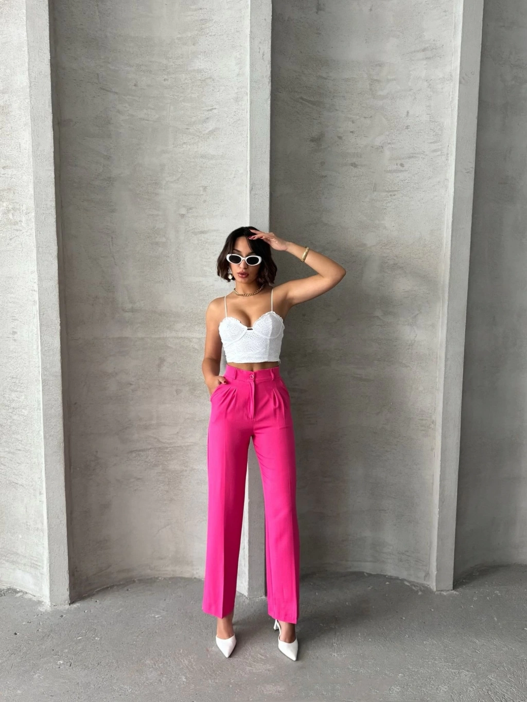 Palazzo fuşya pantolon, şıklığı ve rahatlığı bir arada sunan bir seçenektir.
