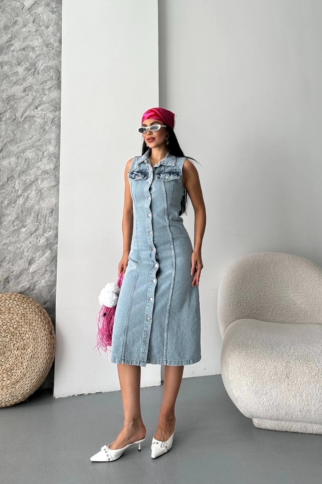 Sıfır kol kar yıkama tunik ceket mavi d2520
