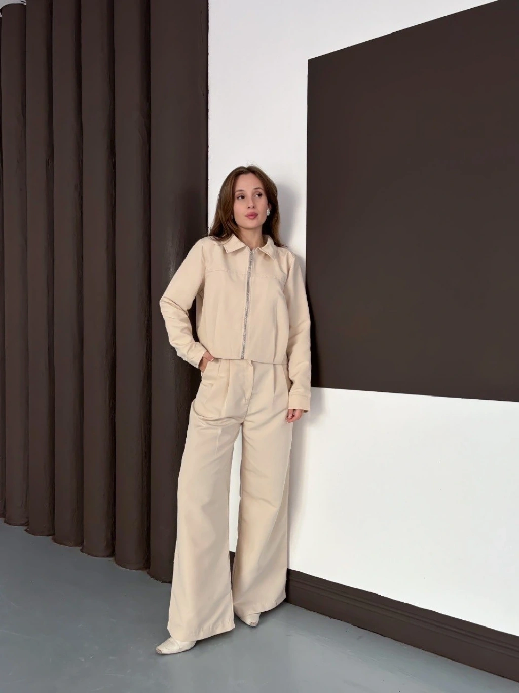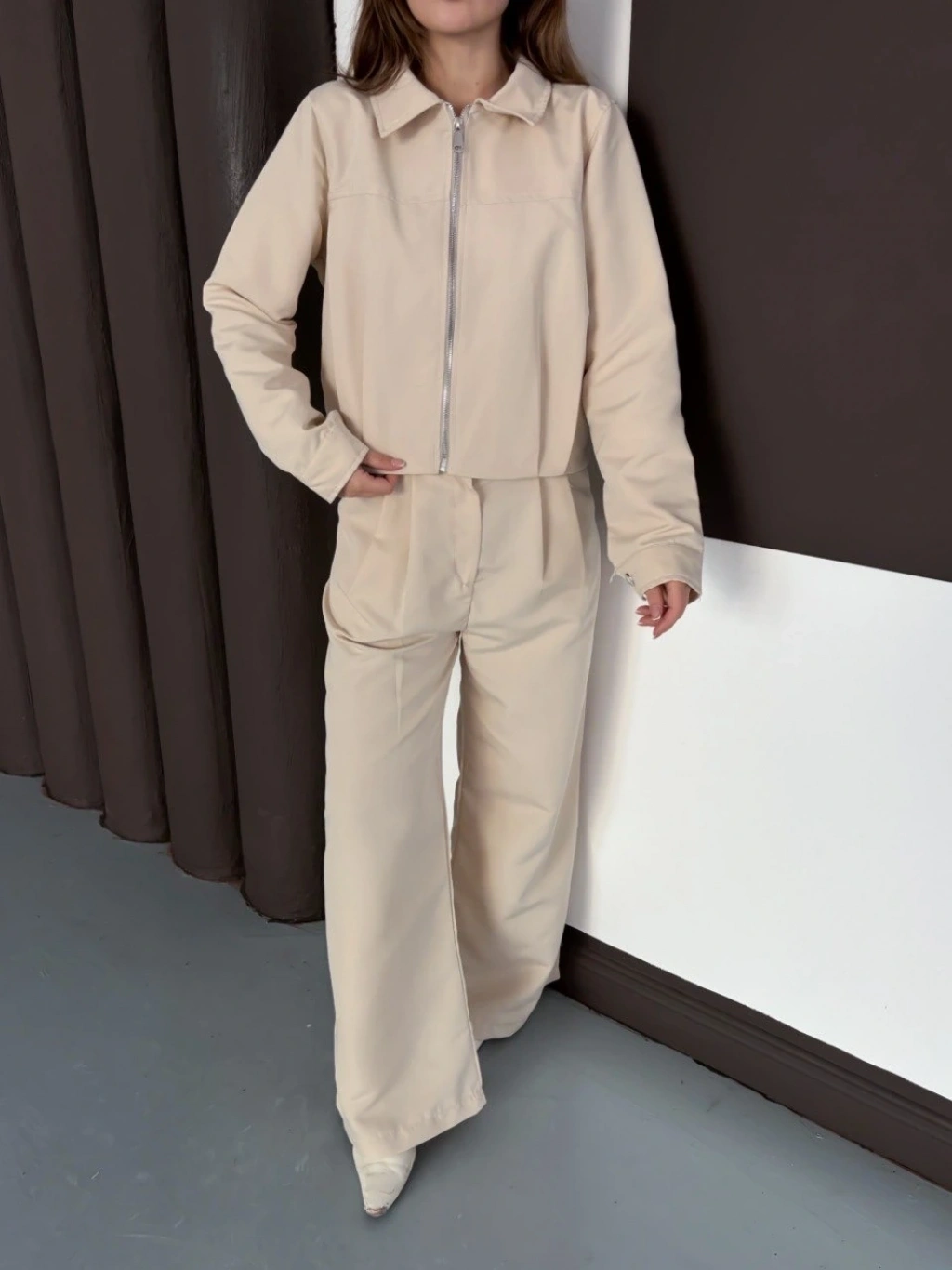 • Trenç takım alt üst bej ons